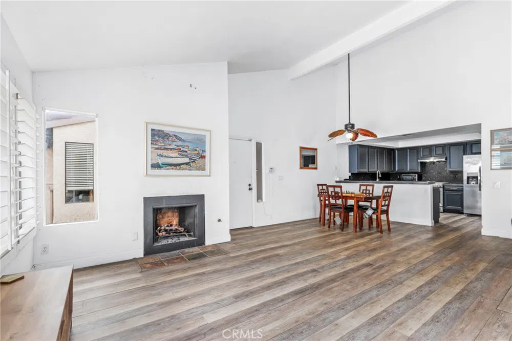 Priced to sale fast. Lovely top floor condo in gated community of Harbor Vista! Enter into your spacious living room with soaring ceilings, a gas fireplace, plantation shutters, and sliding doors that lead to your own private patio. Natural light flows through the open floor plan. The kitchen includes stainless steel appliances, and breakfast bar overlooks the dining room with ceiling fan. Home boasts private laundry room with ample storage space . The primary suite features vaulted ceilings with fan, an en suite bathroom with vanity area, shower and soaking tub and a spacious walk in closet. There is also a slider for direct access to the private patio. There is an elevator in the complex. HOA dues include water, hot water, heat and trash service. Resort like community amenities include streams, two pools, two spas, a tennis courts, basketball court, BBQ area and a clubhouse. 1 parking in garage #80 and 1 additional parking space on Lago (#76). Land lease dues are $220 and land lease expires 8/31/2041