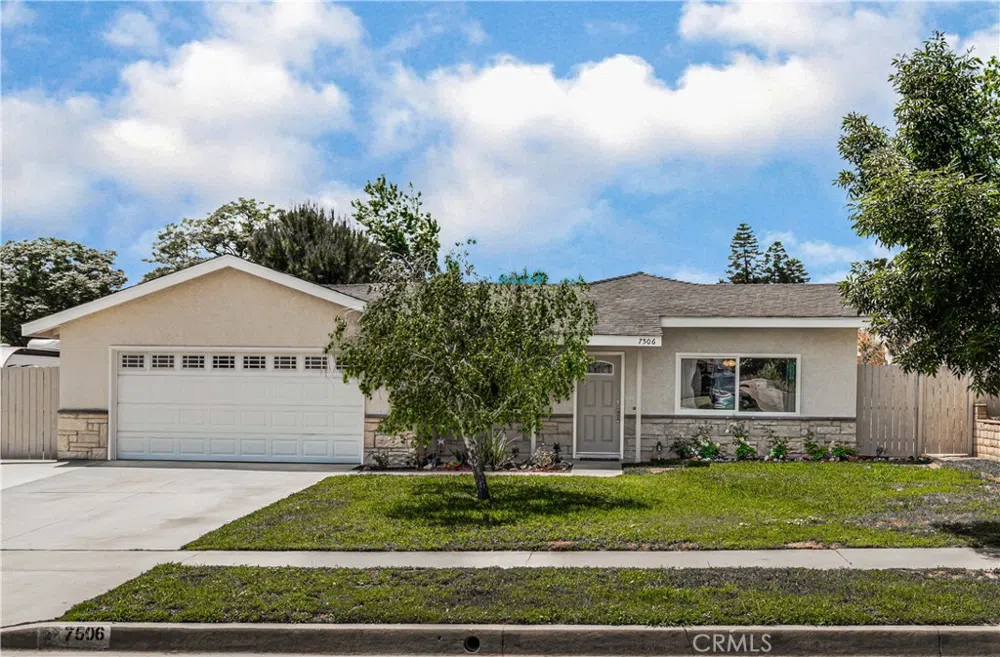 Beautifully remodeled 3-bedroom 2 bath home. As you see the home from the street you can't help but notice the curb appeal of this professionally designed home. The addition of tasteful stone to the venire accents the new doors, windows, and landscaping. As you enter the home you will notice slate looking tile on most of the flooring, recessed lighting, modern fixtures, and open floor plan. The kitchen has been equipped with New Stainless-steel appliances, quartz countertops, and contemporary backsplash. Both bathrooms have been updated with new tile, shower doors, vanities, and lighting. The oversized primary bedroom has its own bathroom, large closet, and French doors that lead to the back yard. The two other bedrooms are also well sized and have great closet space. The finished 2 car garage is equipped with a Ladder access storage, washer-Dryer hookups, and built in shelving. To the side of the house, you can park a smaller motor home, boat, RV, trailer, or 3 cars in tandem. The backyard has a new sprinkler system, Sodded grass and terrace vegetable garden. The house has central Air & Heat, automatic sprinkler system, ceiling fan, attic fan, & large patio.